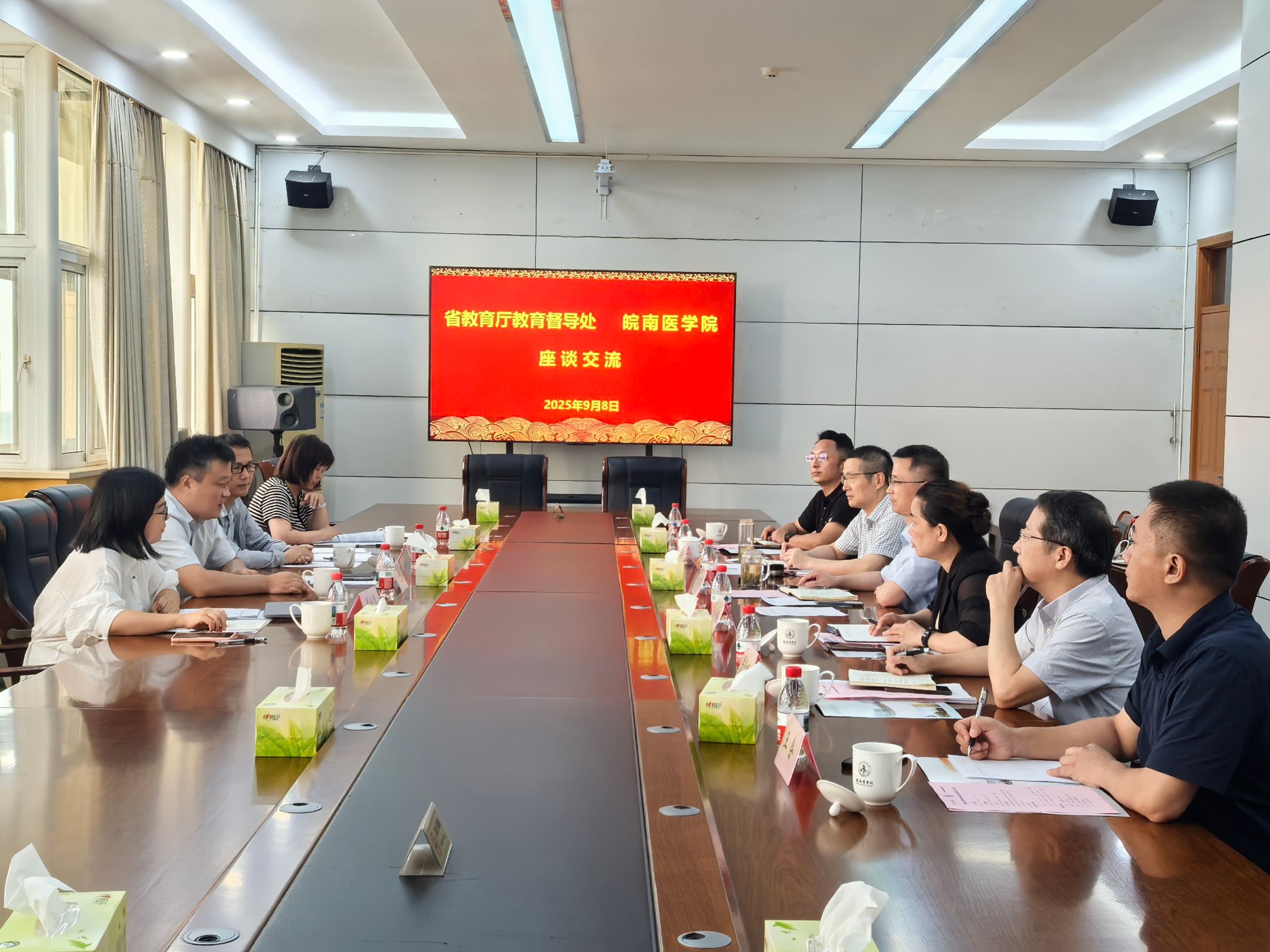 9月8日下午,省教育厅教育督导处处长井辉带领教育督导处主任科员周爱琴,省高等教育研究所朱光明、王宏年一行来我校,就毕业论文工作和教育教学督导开展情况进行调研,会议由校党委常委、副院长余结根主持。